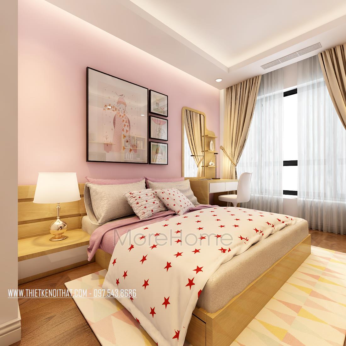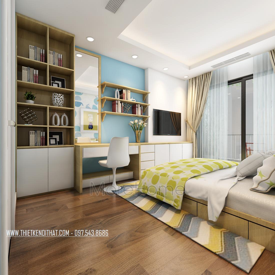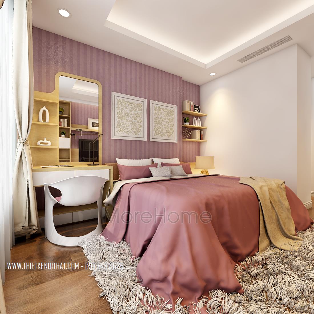 Một trong 3 không gian thiết kế nội thất phòng ngủ hiện đại sử dụng các tone màu sáng tạo hơn như hồng pastel, xanh, vàng làm điểm nhấn giúp không gian trở nên vô cùng ấn tượng. Ánh sáng tự nhiên vẫn là chi tiết được kiến trúc sư vô cùng chú trọng. Không gian mở với cửa kính rộng, trong suốt đem ánh sáng tự nhiên tràn ngập căn phòng. Các thiết kế gỗ ép được thiết kế riêng biệt cho không gian này với đầy đủ tính công năng và nổi bật về tính thẩm mỹ.