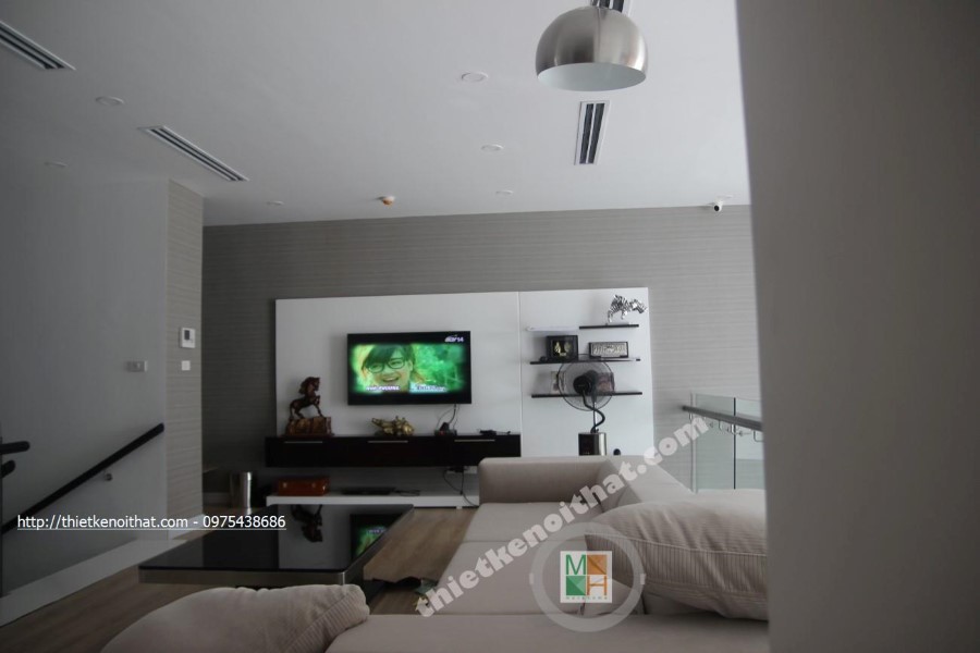 Trong quá trình thi công căn hộ Duplex chung cư Mandarin Garden, kiến trúc sư ưu tiên sử dụng các vật liệu nhẹ như kính cường lực, gỗ và đá tự nhiên vừa đảm bảo tính hiện đại, trẻ trung lại khá linh hoạt khi muốn thay đổi và điều chỉnh.