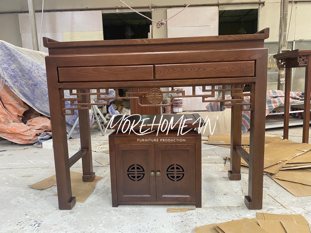 và lớn. Mẫu bàn thờ treo tường gỗ óc chó tự nhiên này được sản xuất với nhiều kích thước theo phong thủy, phù hợp với nhu cầu sử dụng của các gia chủ căn hộ chung cư nhỏ, vừa và lớn.