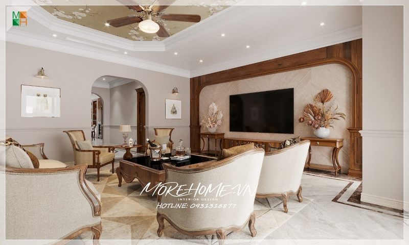 Ngắm nhìn vẻ đẹp tinh tế của thiết kế phòng khách chung cư tân cổ điển làm hút hồn.